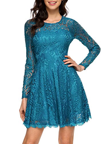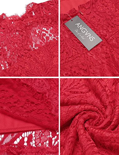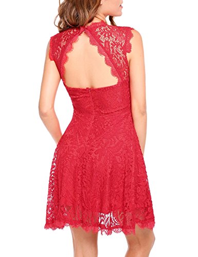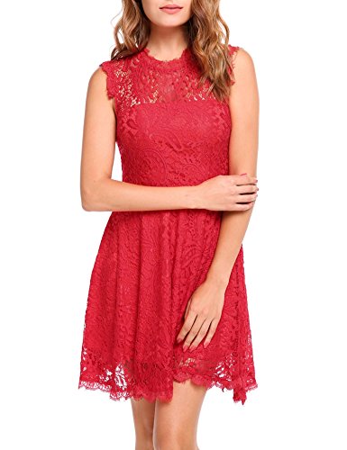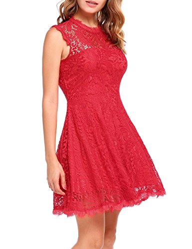 ANGVNS Women Sleeveless Floral Lace See Through Backless Fit and Flare Cocktail Dress with Lining