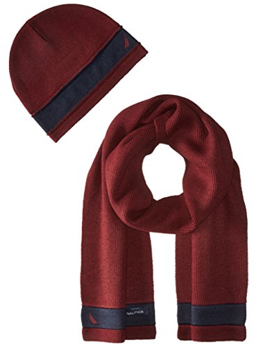 Nautica Men's Raised Stripe Hat and Scarf Set, Windsor Wine M, One Size