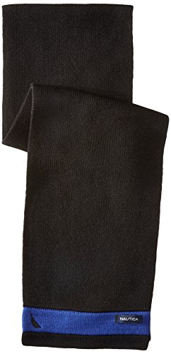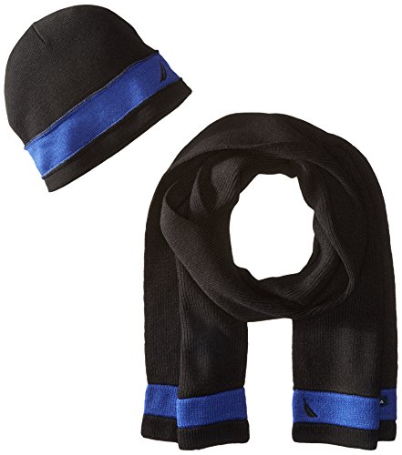 Nautica Men's Raised Stripe Hat and Scarf Set, Black Multi, One Size