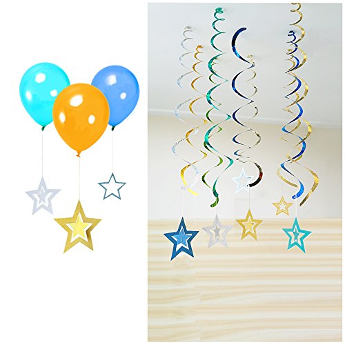 Package includes: 2 pcs Silver Star Paper Garlands of the color as the photo shows.Each string is about 6.6 feet long. Choose the style you prefer to best show the theme and atmosphere of your party. Like romantic purple, noble gold,sweet pink,or cool blue
