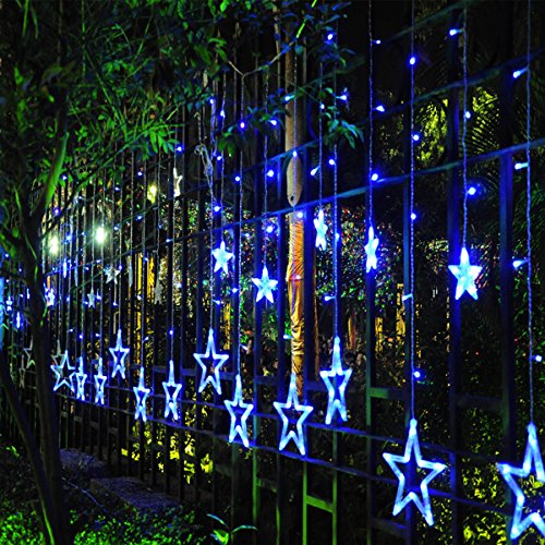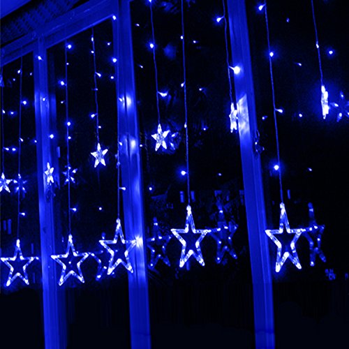 Star Curtain String Lights Fairy Decorations Battery Operated 4.5-5V Blue