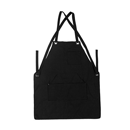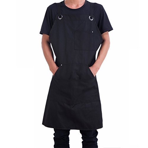 Canvas Apron Heavy Duty Work Apron Durable Shop Apron Utility Apron with Pockets Cross-Back Straps and Adjustable up to XXL Fits for Unisex Black