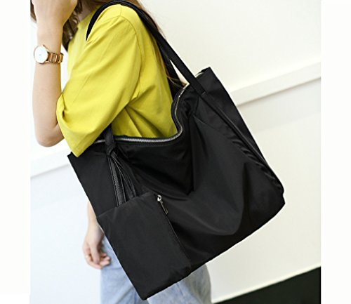 Women Oxford Nylon Shoulder Bag Large Travel Shopper Tote Bag Casual Handbag Carry All Shopping Bag Hobo Style with Small Purse