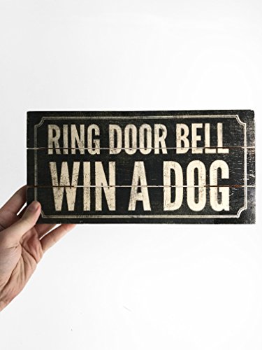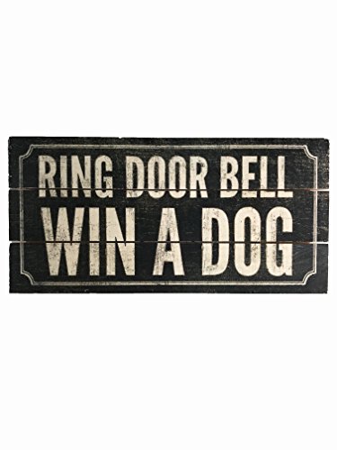 “Ring Door Bell Win A Dog” Handcrafted Reclaimed Wood Sign: 12"x6" Wood Pallet Home Décor, Dog & Pet Home Accessory, Pet Lovers Quote Sign, Made in the USA