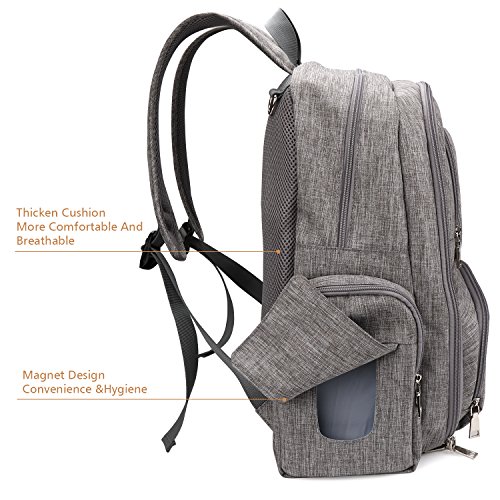 Convenience & Hygiene: -The side pocket for tissue use the Iron absorption design that more convenient than zipper design and more hygiene than wipes pocket design. -Includes large changing pad that you can change baby diaper anytime and anywhere and don't have to find a clean place and afraid of dirty baby clothes