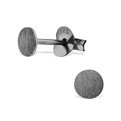 Schmuxxi Ohrstecker 925 Silber Ohrringe matt geburstet 4mm rund Schwarz Grau fur Damen und Herren (2 Stuck / 1 Paar)