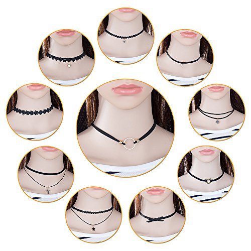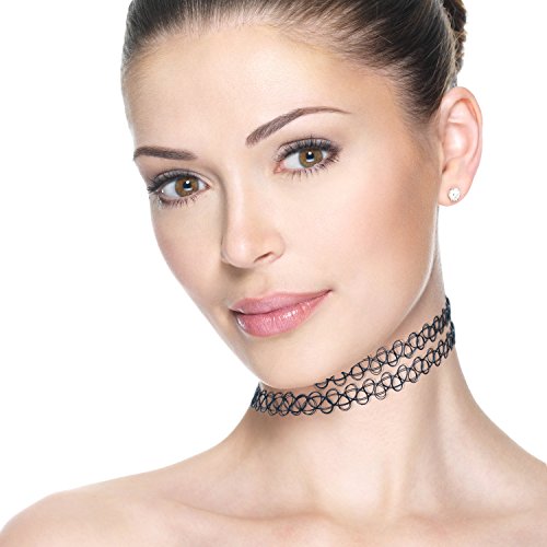 Tattoo Halskette ZWOOS Gummi Halsband Henna Tattoo Halskette Kette Choker Stretch Gothische Elastische Set, 12 Stuck