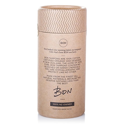 BON believes that a women's health and wellbeing is priceless and irreplaceable. BON Tampons are made from 100% organic GOTS-certified cotton, manufactured to the highest organic standards without the use of chemical fertilizers, pesticides, insecticides or fungicides. BON Tampons are not sprayed with fragrance or bleached with harmful chemicals, they are completely natural. Just as nature intended.
