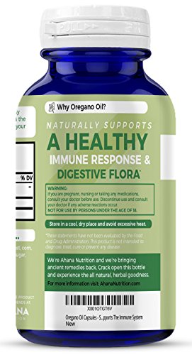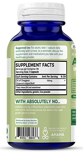 -. Feature : ABSOLUTELY THE BEST OREGANO CAPSULES: Ahana Nutrition offers the best Oregano Oil Capsules on the market. Our pills are made from the best organic oregano oil and features some of the purest ingredients ensuring only the best for your body. The tablets from Ahana Nutrition are packed with health benefits that will ensure a greater wellness for your body. / COMPLETELY TASTELESS & ODORLESS: Our Oregano Softgels are completely tasteless and odorless making it extremely easy to use. They are delivered in an easy to swallow capsule form for numerous benefits. Get the fully all natural & pure formula on the market. / PACKED WITH BENEFITS: Our Oregano Pills are filled with benefits for your body. This fully organic solution is backed on years of scientific research. This blend serves to naturally support digestive properties, aids the respiratory system and supports the immune system. / WHY AHANA NUTRITION'S OREGANO EXTRACT: Our oregano supplements are turned into capsules, which are manufactured in the USA in a FDA registered facility under strict quality control and standards. Our capsules are developed sourcing the best ingredients while ensuring that they do not contain fillers, artificial flavoring or or other harmful derivatives. / 100% SATISFACTION GUARANTEED: If for any reason at all, you are unhappy with your purchase, you'll receive a no questions asked money back guarantee within 30 days.