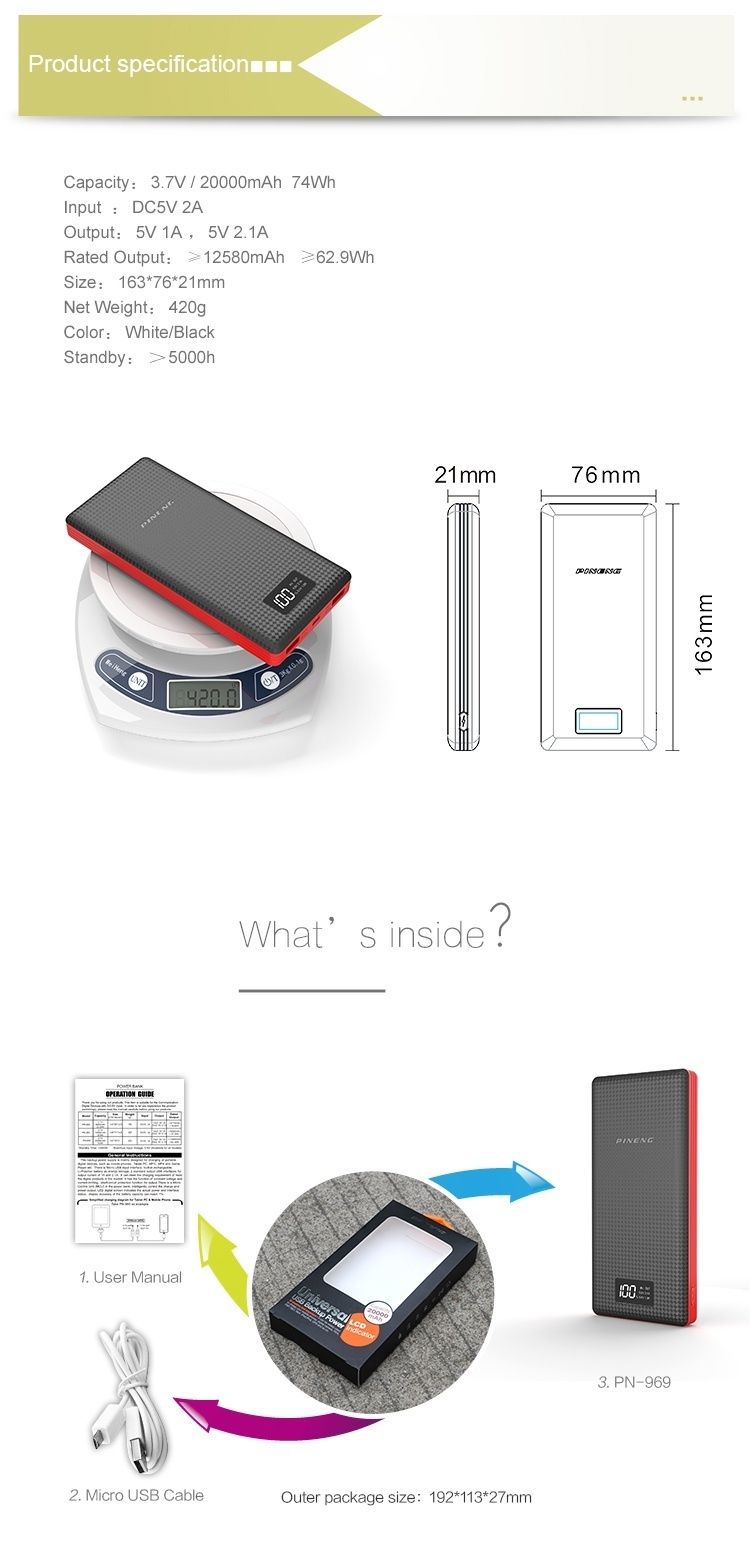 Product details of Pineng PN-969 20000mAh Power Bank