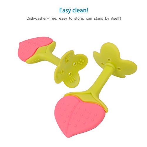 Excellent Pain Relief: Soft and chewable silicone allows your baby to gnaw and bite on the baby teethers to soothe out their discomfort and gently massage their gums to stimulate healthy teeth growth. Say NO to painful immerging molars.