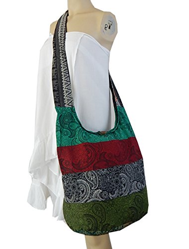 A versatile and stylish hobo carryall made of durable but lightweight cotton fabric, tossed over the shoulder for all day comfort and security. The pattern reflects an elephant mosaic print. Fully lined with zippered compartment, wood button clap and a zippered inside pocket. Size Length: 18" Depth: 9.5" Drop: 25" shoulder strap (50" end to end)Feature