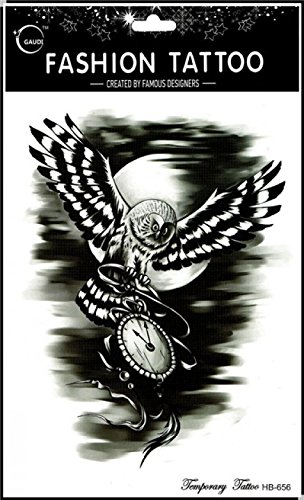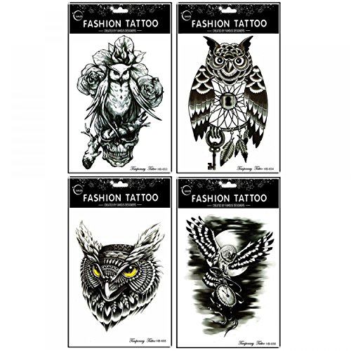Wonbeauty Fake and real temp tattoo stickers 4pcs different black and white owl temporary tattoo in a package