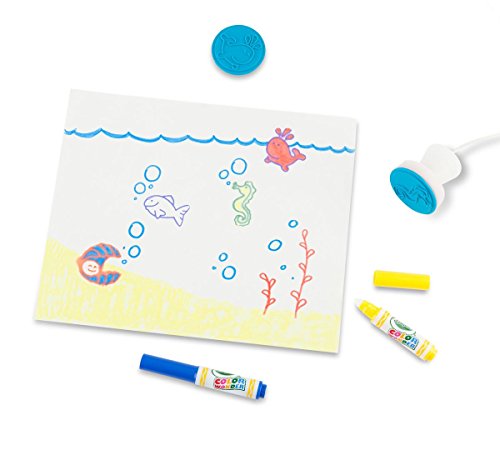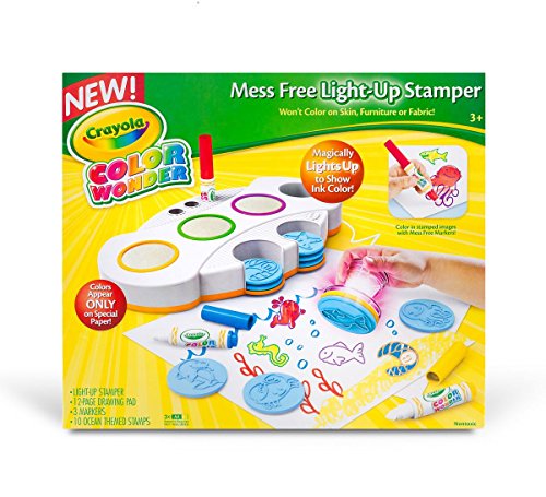 Magical, mess-free stamping! color wonder inks are clear but the mess-free light-up stamper magically knows what color you're using. Hold it over the orange ink pad and the handle lights up orange. Watch it change colors over the green and purple pads too. Includes 12 pages of color wonder paper, 3 mini markers, 10 ocean-themed stamps.Feature