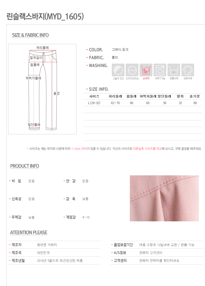 - 세탁방법 및 취급시 주의사항상품상세페이지참조