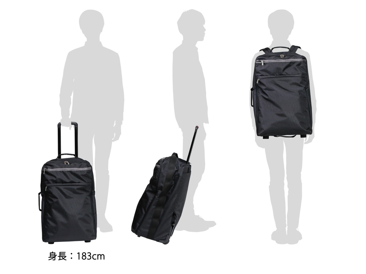 本体はキャリーケースとしてはもちろん、シーンに応じてリュックサックにも変化します。2通りの持ち運び方ができるので、出張先や旅行先でも快適な移動を実現してくれます。