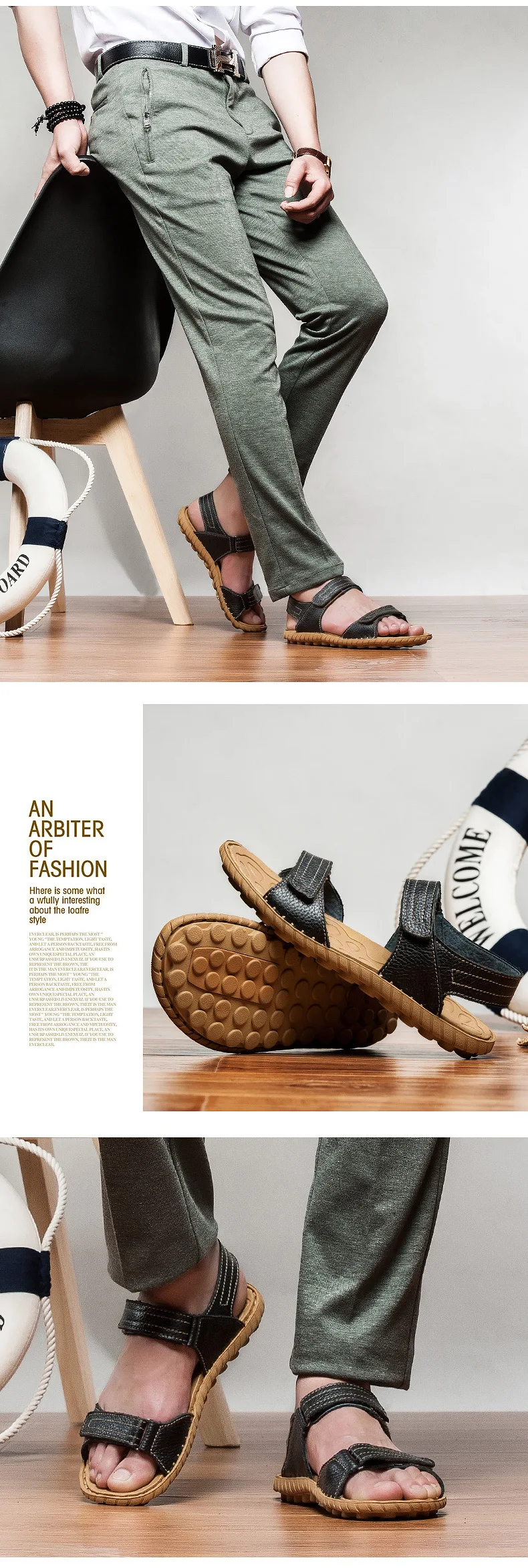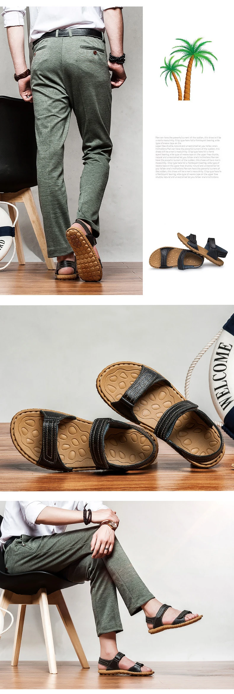 genuine leather men sandals:Summer Men Shoes