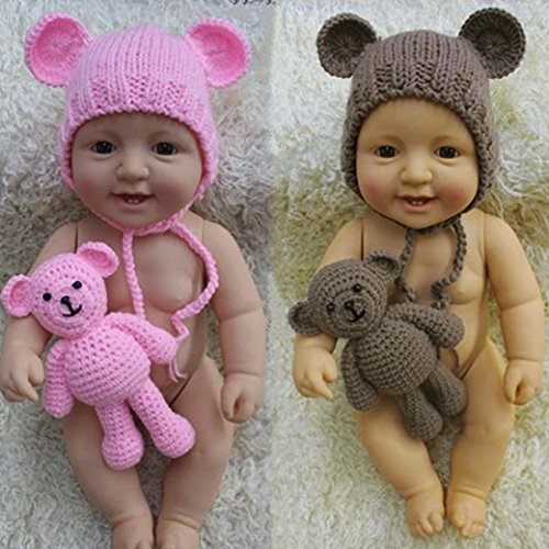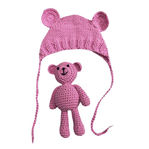 Specifications: Gender: Unisex 100% Brand New High quality. Item Type: Newborn Photography Props Pattern: Solid Decoration: None Style: Occident Material: knitting Cotton Cartoon style, popular baby like Very good photography props, it is suitable for small baby Color: 6 Colors Package include: 1PC Hat 1PC Knit Bear Toy Suitable for ages in children (0-6 months) 0