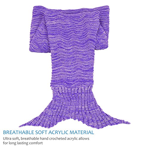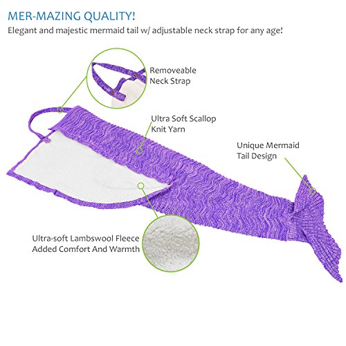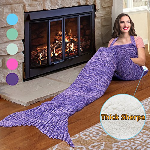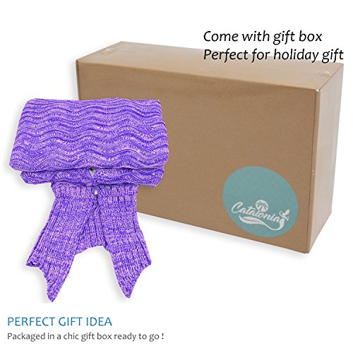 Studio : Catalonia Publisher : Catalonia Product Description Catalonia super warm mermaid tail,sherpa fleece lining inside, hand crocheted knitted outside with anti-slip neck strap provide you a comfortable and warm when snuggle into it. Come in a gift box, perfect for holidays gift, Mother Day's Gift, Thanksgiving gift, Christmas gift. Ultra-soft touch, non-irritating and skin-friendly for your skin, stay warm and cozy all year. Adorable mermaid blanket with tail, like a sleeping bag ideal for fun and comfy. Make you childhood dreams come true. Great for playing at home, Sleepovers, Camping, Lounging, sleepovers, around the campfire, watching family movies or anywhere! 1CTMM300PP 0