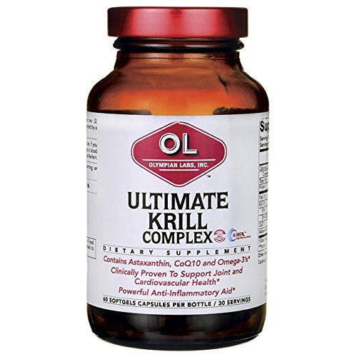 -. Binding : Health and Beauty -. Brand : Olympian Labs -. Department : Health and Personal Care -. EAN : 0710013000798 -. Feature : Contains 8 mg astaxanthin per dose to improve cardiovascular health, triglyceride levels and speed up recovery after exercise / Aids in skin nourishment and helps reduce fine lines and wrinkles / May help reduce severity of PMS symp -. IsAdultProduct : 0 -. Label : Olympian Labs -. LegalDisclaimer : The statements and claims made about products have not been evaluated by the United States Food and Drug Administration (FDA). The products are not intended to diagnose, treat, cure, or prevent any disease. The content and information provided directly or via links to other websites are for information purpose only. None of this information is intended as a substitute for advice from your physician or other health care professional. The information should not be used to diagnosis or treatment of any health problem or for prescription of any medication or other treatment. You should consult with a healthcare professional or your physician before starting any diet, exercise or supplementation program, before taking any medication,or for any health problem. The information is not comprehensive and does not advise or recommend self-management of health issues. Everyone is different and may react differently to different products. You should always consult your physician about interactions between medications and nutritional supplements you are taking. -. Manufacturer : Olympian Labs -. MPN : 010013000798 -. NumberOfItems : 1 -. PackageQuantity : 1 -. PartNumber : 010013000798 -. ProductGroup : Health and Beauty -. ProductTypeName : HEALTH_PERSONAL_CARE -. PublicationDate : 2013-07-21 -. Publisher : Olympian Labs -. ReleaseDate : 2013-07-18 -. Size : 100 -. Studio : Olympian Labs -. Title : Olympian Labs Ultimate Krill Complex Oil Softgels, 60 Count -. UPC : 710013000798