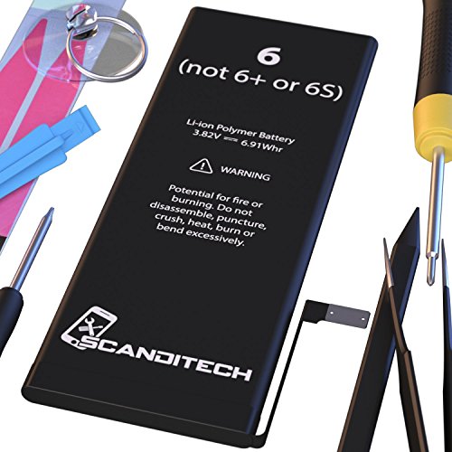 ScandiTech Battery Model iP6 - Replacement Kit with Tools, Adhesive & Instructions - New 1810 mAh 0 Cycle Battery - Repair Your Phone in 15 min - 1 Year Warranty
