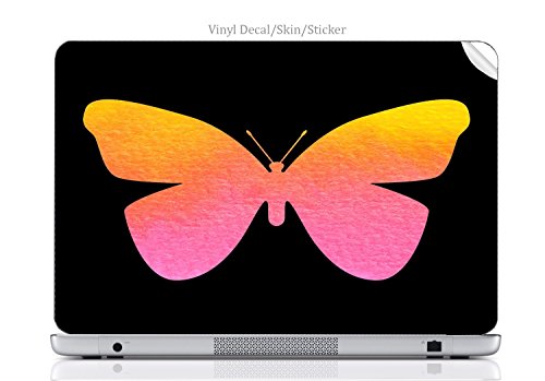 -. Title : Laptop VINYL DECAL Sticker Skin P.R.Int Watercolor Butterfly Yellow Orange Pink Black Background fits Latitude E6430u