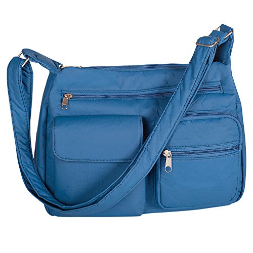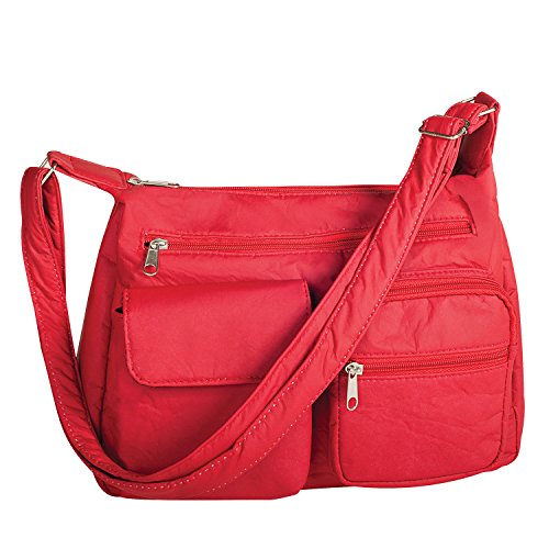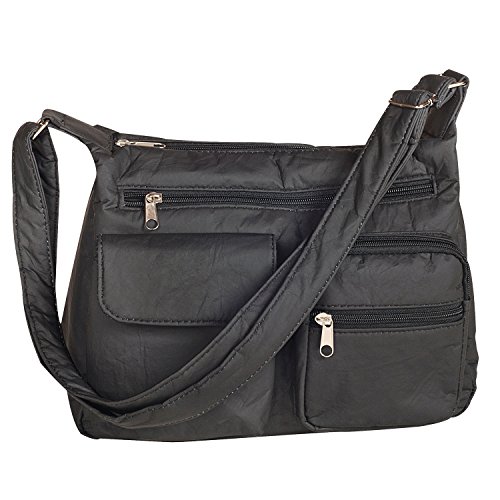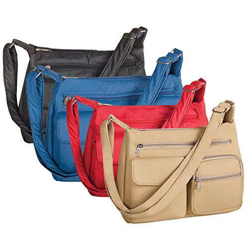 Product Description It's Not Your Everyday Handbag... Made of durable crinkle polyurethane, giving it that designer suede look every girl loves! Has a nice roomy, zippered main compartment with 3 organizing pockets inside, 3 zippered and 1 magic touch outer pockets and 48"L adjustable strap, so it can be worn over the shoulder or across your body. Import approx. 12"L x 9"H x 5"W. Includes 2 handbags (same color) 0