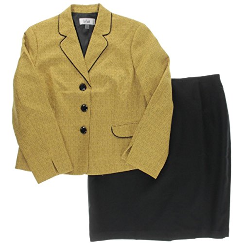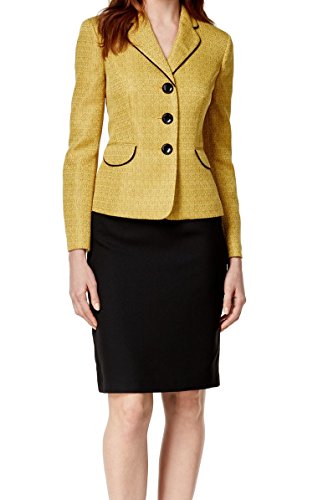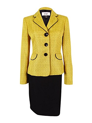 Binding : Apparel Product Description New Le Suit Gold Leaf Blazer Jacket and Black Skirt Suit Size 4 Original Price $200 Manufacturer's Color: Jacket - Gold Leaf, Skirt-Black Description: Jacket - Padded Shoulders, Lined / Skirt - Straight, Lined, Back Hidden Zip Material: Shell Lining: 100%Polyester 0