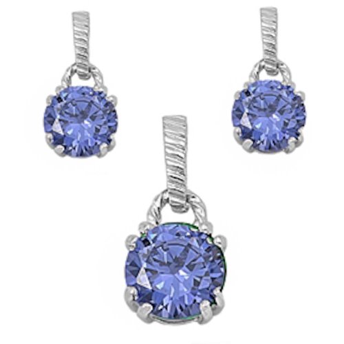 -. Title : Best Seller Round Simulated Tanzanite .925 Sterling Silver Earrings And Pendant Set