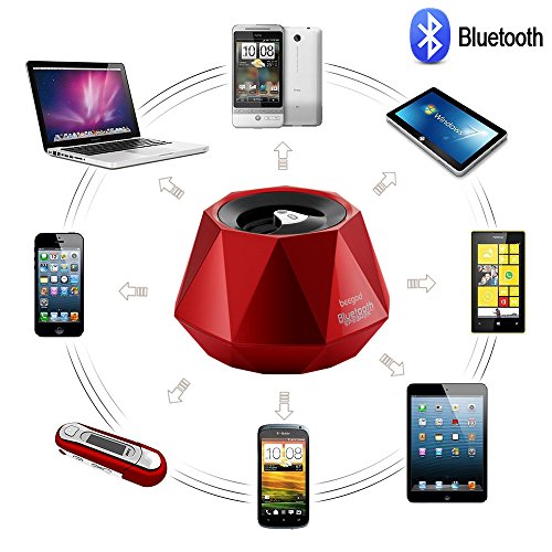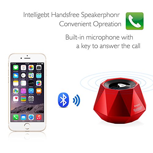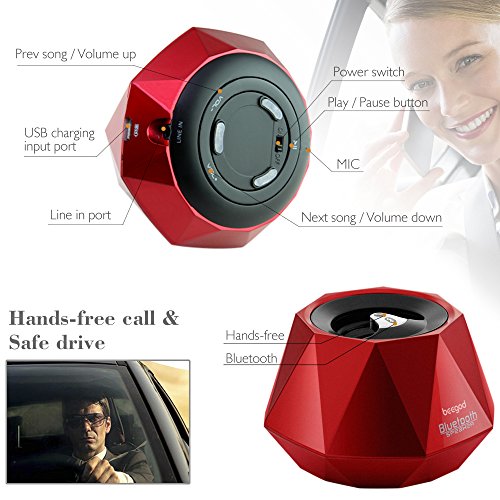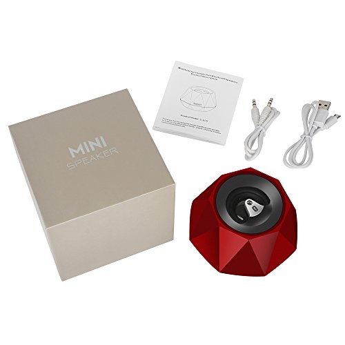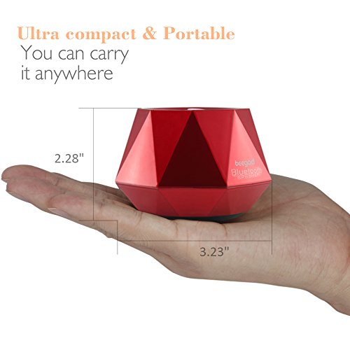 Bluetooth Speakers, beegod Mini Diamond Bluetooth Wireless Stereo Speaker with Mic For Phone and AUX Line In (Red)