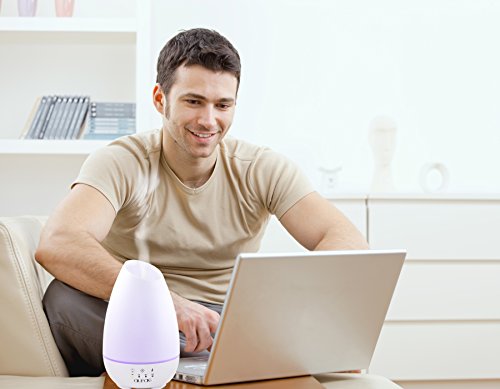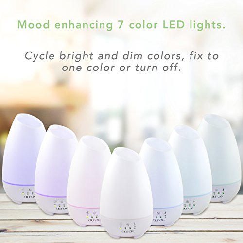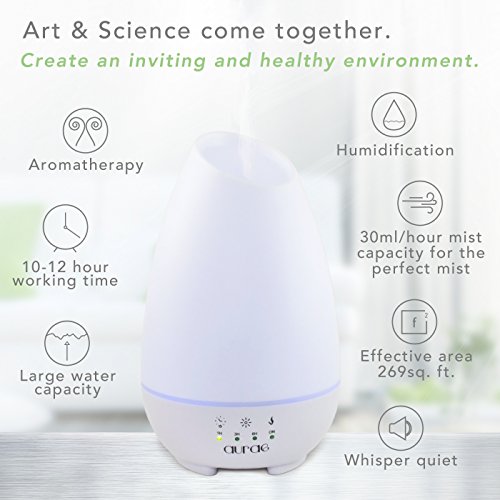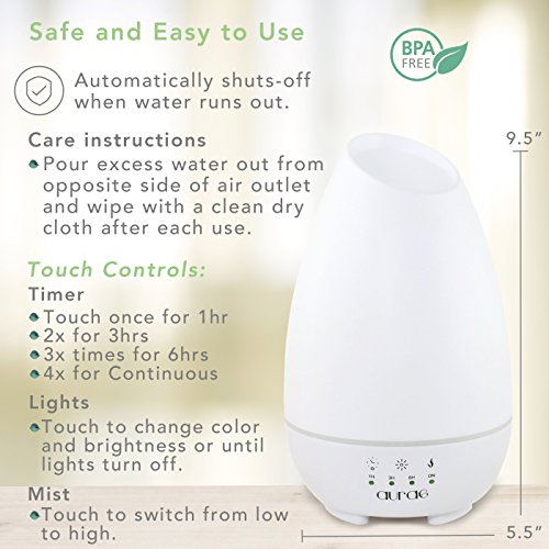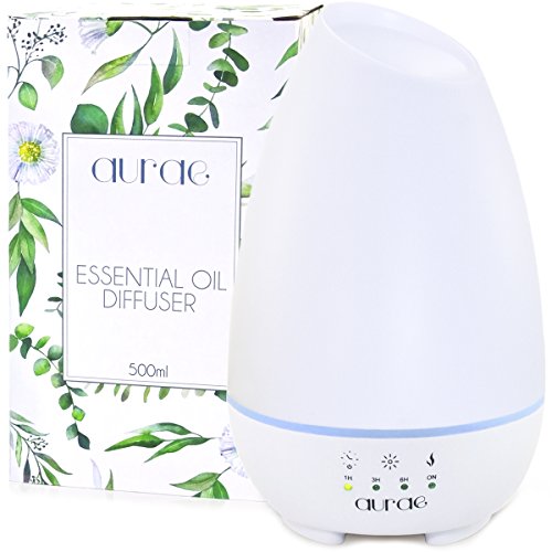 Aurae Essential Oil Diffuser- 500ml Aromatherapy Diffuser Ultrasonic Cool Mist Humidifier with Touch Timer, Mist Control and 7 Color LED Lights (White)