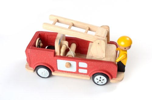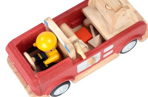 - Preschoolers will feel the thrill of driving their wooden firefighter to the rescue in this beautifully crafted Fire Engine from Plan Toys