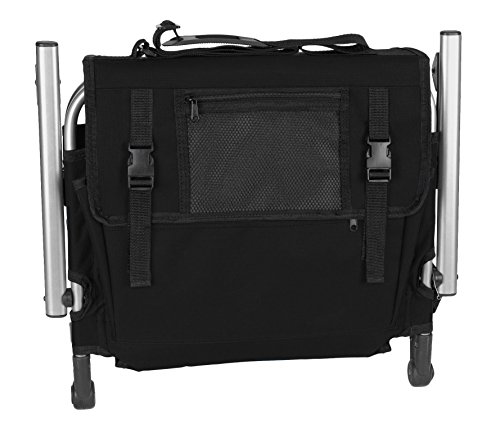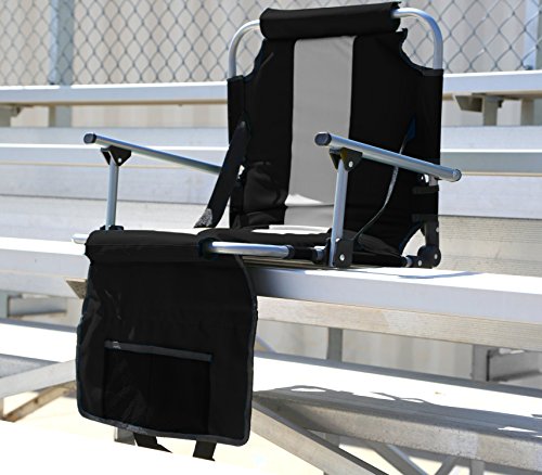 -. Feature : Collapsible, padded stadium seat with arm rests / Steel hook secures seat to bleachers; large storage pocket on seat back / Steel tubular frame with secure snapping locks / Adjustable shoulder strap for carrying / Measures 19 by 17 by 5.5 inches; one-year warranty against defects