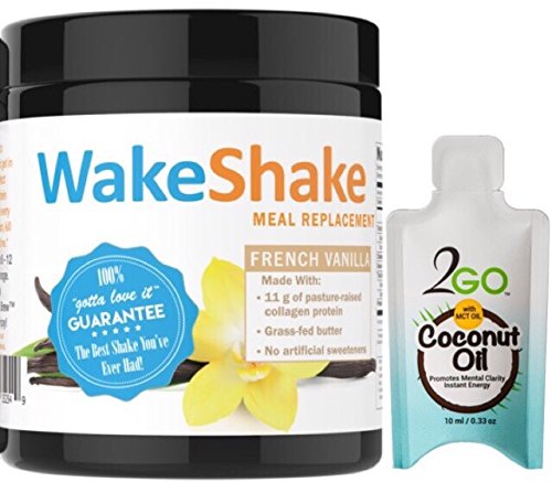 -. Title : WakeShake Collagen Protein Meal Replacement Shake (7 servings) plus 2GO Organic Cold-Pressed Virgin Coconut Oil with MCT Oil (15 Single Serving Travel Packets)