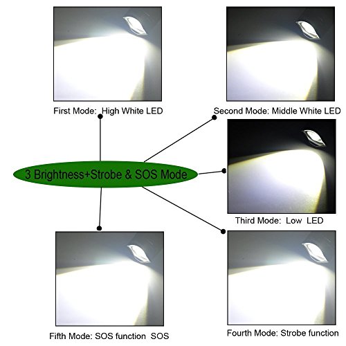 5 Switch Modes:High, Mid, Low, Strobe, SOS, conveniently for different place to use; With this hands-free light, you can not only read at night, but also can do outdoor activities, such as, running, jogging, hiking, riding, hunting, etc