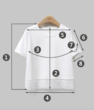 | 尺码 | ①前衣长 | ②后中长 | ③胸围 | ④下摆围 | ⑤肩宽 | ⑥袖长 | ⑦袖臂围 | ⑧袖口围 | ||