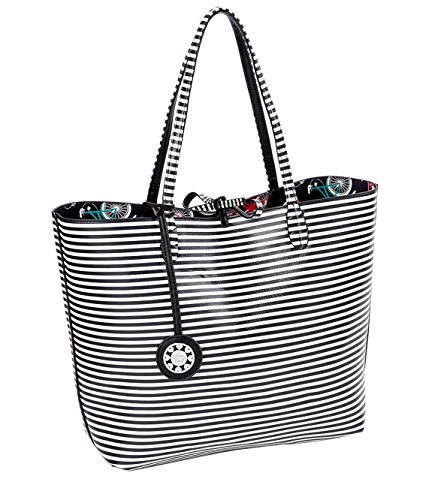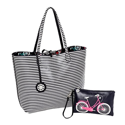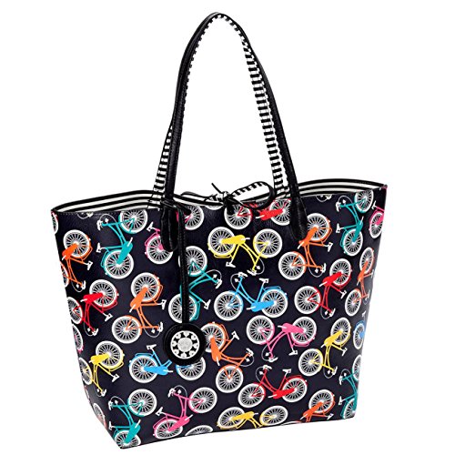 Product Description 3 in 1- Tote bag reverses from a colorful bicycle print to classic stripes includes matching wristlet bag. Part of the Easy Rider Collection. 0