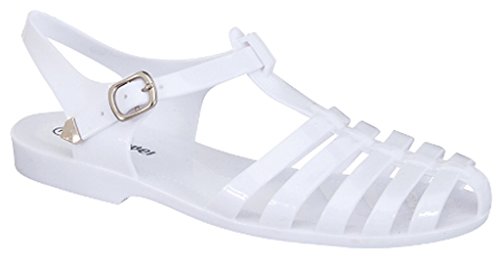 -. Title : Forever Jedi New Women Summer Round Toe T-Strap Retro Beach Jelly Rainbow Clear Rain Flat Sandal (White)