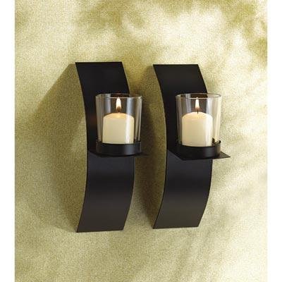 Mod-Art Candle Sconce Duo , Modern Art Candle Sconce Duo matte Black Finish w Glass Cups New