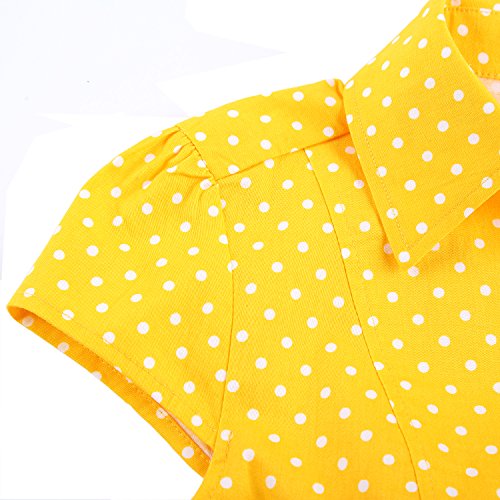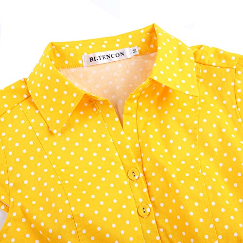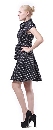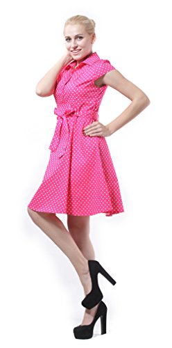 | Feature : - 97% Cotton, 3% Spandex; Fabric provides stretch. - Unlined. Side zipper closure. Front button closure. Removable sash - Cute cap sleeves, covered buttons - BI.TENCON register brand Description : Swing into a look of pure, polished sophistication with this vintage-inspired, A-line frock. Cute cap sleeves, covered buttons, a notched collar, and a discreet side zip provide a flawless fit, cotton-blend fabric, ensuring an ensemble that's always in step with style. |