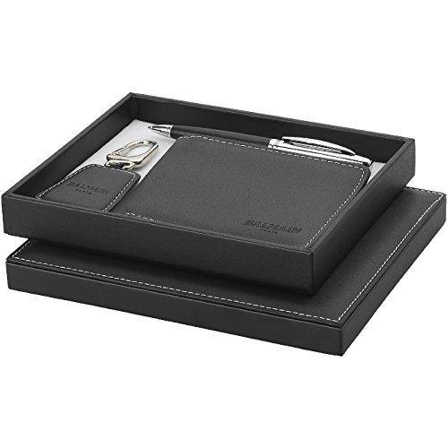 -. Feature : Drehkugelschreiber mit großer Metallmine, Geldscheinetui und Schlüsselanhänger aus Kunstleder, zusammen in einer hochwertigen Balmain Schatulle mit Veloureinlage. Metall und Lederimitat. / Material: metal and leather. / Größe: 19.3×16.3×3.5 cm