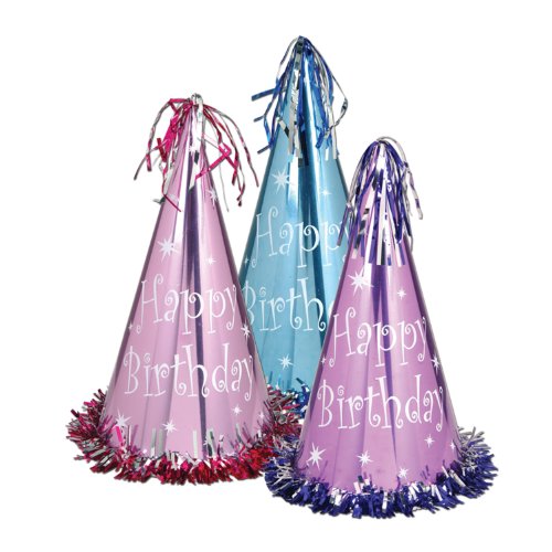 Beistle 60618 12-Pack Fringed Pastel Foil Birthday Party Hats, 12-1/2-Inch