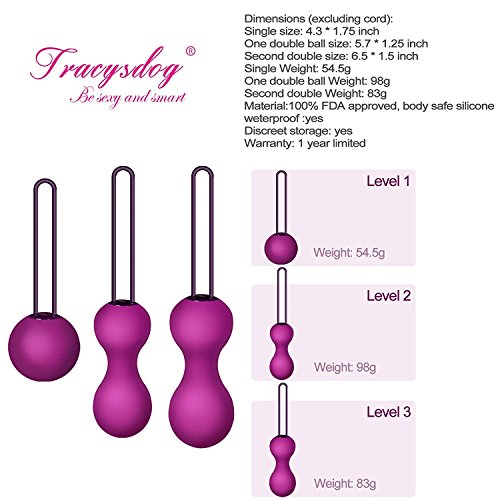 Studio : Tracy's Dog Publisher : Tracy's Dog Binding : Health and Beauty Product Description Doctor Recommended: Recommended by physical therapists solution for incontinence weak pelvic floor muscles: Tracy's Dog Weights kit Bladder Control Device. A luxury silicone set presented in beautiful gift packaging. A three-step system, each step has a differently shaped and weighted exerciser to help to tone your pelvic floor, which may strengthen pelvic floor muscles improving bladder control; post-pregnancy recover and overall better pelvic health.