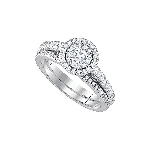 -. Title : 14k White Gold Princess Round Natural Diamond Halo Cluster Womens Wedding Bridal Ring Set (4/5 cttw.)