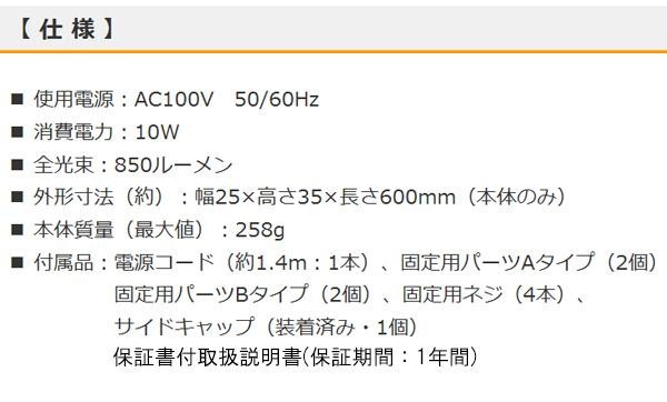 | ムラのない面発光と、広い発光角度(メーカー従来品比)で明るく照らします。付属の固定用パーツ・ネジを使えば、電気工事不要で簡単に取り付けられるので、お店やお住まいの様々な場所で手軽に使えます。本体を含め、最大12台まで連結できます。 |