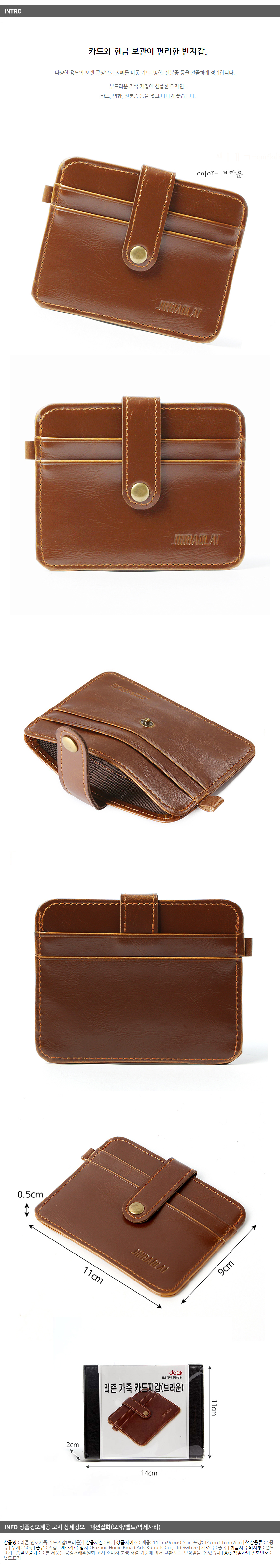 <상품명 : ZP8 리즌 인조가죽 카드지갑(브라운)>