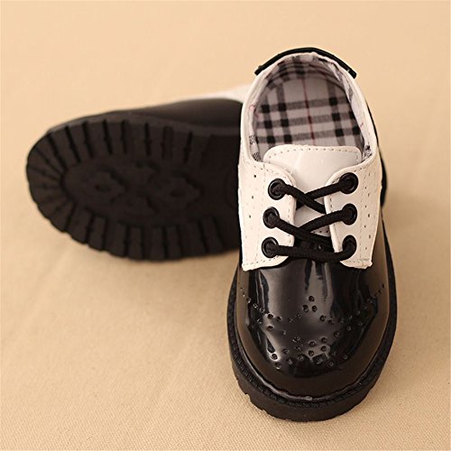 -. Feature : Black with white saddle oxford style makes church shoe elegant on your little boy. / The lace-up design ensures the shoes can be easily worn or taken off, the round toe won't make your toddler's feet crowded and help feet to grow healthy to a great degree. / The brogue design on the upper and the plaid lining show a touch of British style. / Classic style saddle shoes can be worn with a wide range of outfits, suitable for every outing. / Suitable for wedding party, school, church, performance on stage and so on.