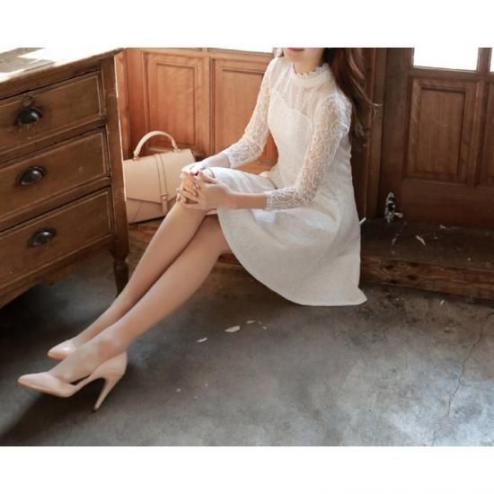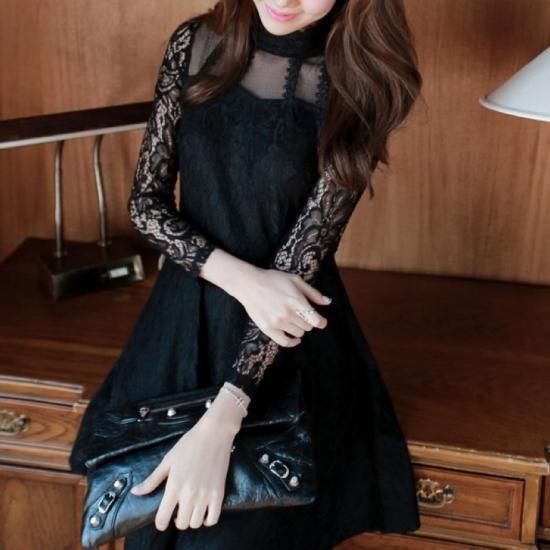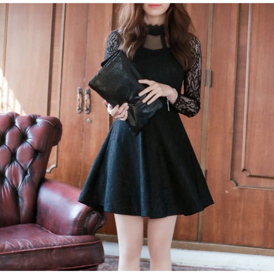 パーティードレス ミニ丈 ワンピース ハイネック 総レース フレア ブラック ホワイト シースルー 透け感 大人 可愛い セクシー ガーリー お呼ばれ drgz2158