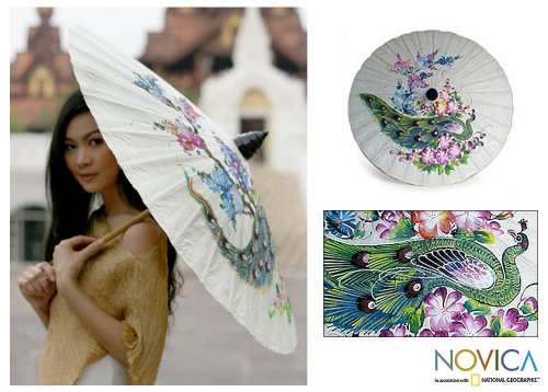 -. Binding : Lawn & Patio -. Brand : NOVICA -. Color : Multicolor -. Department : Home Accents -. Feature : Size: 26" H x 32.5" Diam. / Authentic: an original NOVICA fair trade product in association with National Geographic. / Certified: comes with an official NOVICA Story Card certifying quality & authenticity. / Exceptional Artisan Quality by Nikom - crafted with care to be treasured for years to come. / Product info: Saa paper and bamboo -. Label : NOVICA -. Manufacturer : NOVICA -. MPN : 34096 -. PackageQuantity : 1 -. PartNumber : 34096 -. ProductGroup : Lawn & Patio -. ProductTypeName : OUTDOOR_LIVING -. Publisher : NOVICA -. Studio : NOVICA -. Title : NOVICA Floral Paper Parasol Saa Paper and Bamboo Home, Multicolor 'Peacock And Flowers'