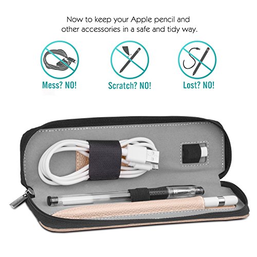 MoKo Pencil Holder Case for Apple Pencil, Premium PU Leather Case Carrying Bag Sleeve Pouch Cover for Apple iPad Pro Pencil / Pen (with Built-in Pocket and Holder), Rose GOLD